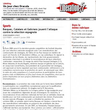 O xornal comeza o artigo titulado "Vascos, cataláns e galegos xogan ao ataque contra a selección española" analizando se os partidos do Campionato Europeo deste ano van ser os últimos disputados por unha "selección nacional española unida", posto que "as reclamacións das comunidades de Cataluña, Galiza e Euskadi no ámbito do deporte tomaron, o 29 de decembro en Bilbao, un aquel simbólico".