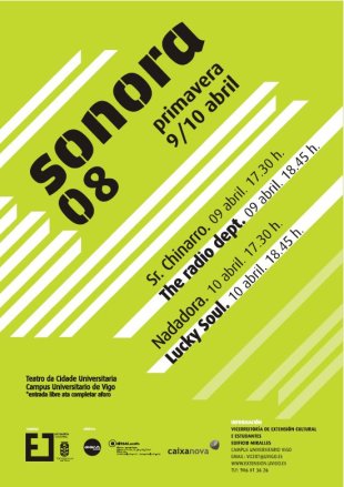 O campus da Universidade de Vigo tense convertido nos últimos anos en escenario habitual de concertos. Polo Teatro do Campus teñen pasado bandas e artistas de peso internacional, como Micah P Hinson, ou os mallorquíns Sexy Sadie, que ofreceron en Vigo o seu penúltimo concerto antes de separarse. Agora chega o ciclo Sonora 08, que durante dous días ofrecerá catro concertos de pop.