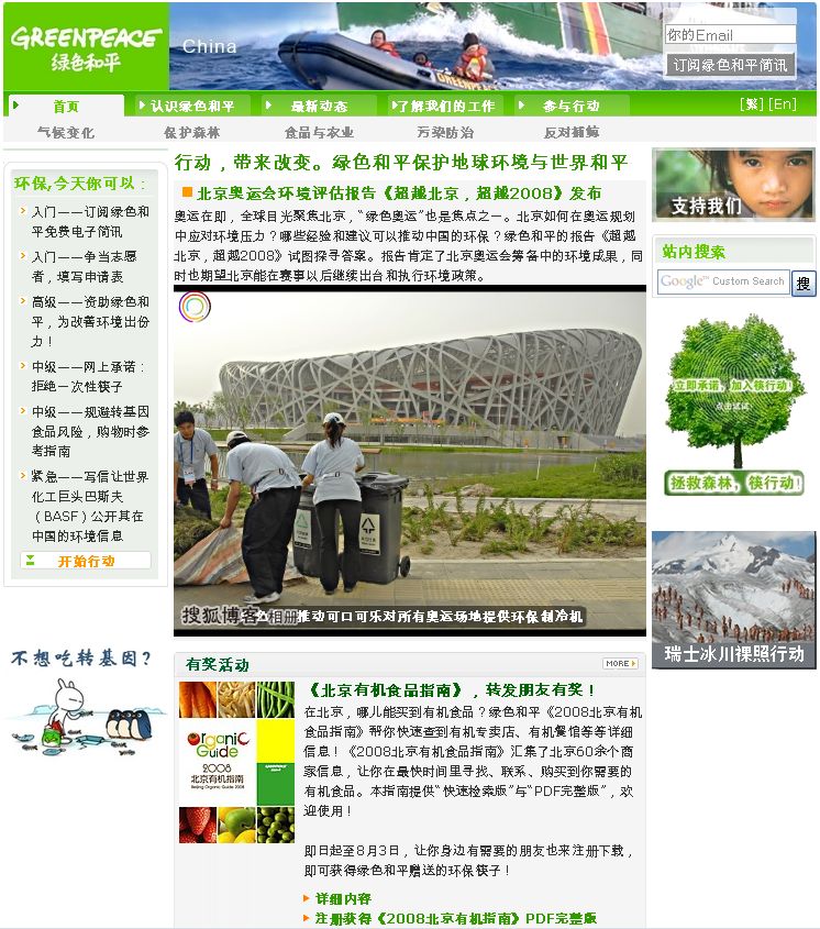 O colectivo ecoloxista Greenpeace presentou esta segunda feira un informe (titulado China despois dos Xogos: Leccións de Beixín) sobre o traballo ambiental feito na sede olímpica, no que conclúen que os atletas deberían preocuparse de veras pola mala calidade que ten o ar en Beixín.