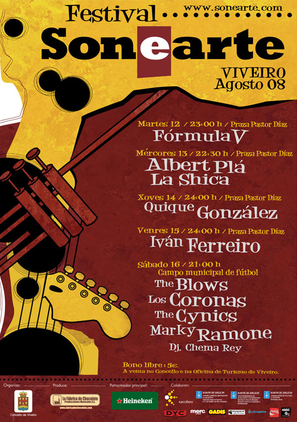 Dende este martes a vila de Viveiro énchese de moita boa música nunha nova edición do festival SoneArte, que abranguerá un feixe de espectáculos entre o 12 e o 16 de agosto. As actuacións serán na praza Pastor Días e no campo municipal de fútbol. Na última noite actuarán prebostes do rock'n'roll como Marky Ramone ou os Cynics.